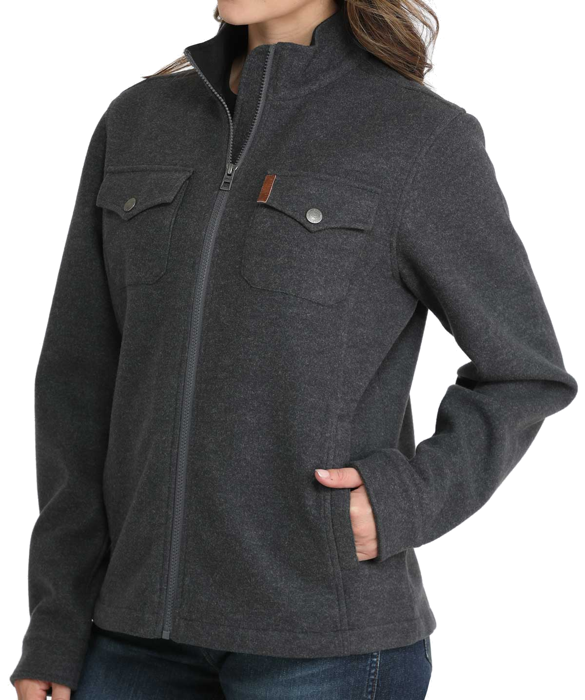 Stay comfortable and ready for anything with this seasons' Cinch Shirt Jacket - your go-to layer for life on and off the ranch. Designed from durable poly-rayon brushed knit fabric, this jacket delivers the perfect balance of warmth, flexibility, and rugged style. A full front zipper makes for easy layering, while practical pockets and snap cuffs add everyday functionality. Whether tackling chores or heading into town, this versatile piece is built to keep up from sunup to sundown.